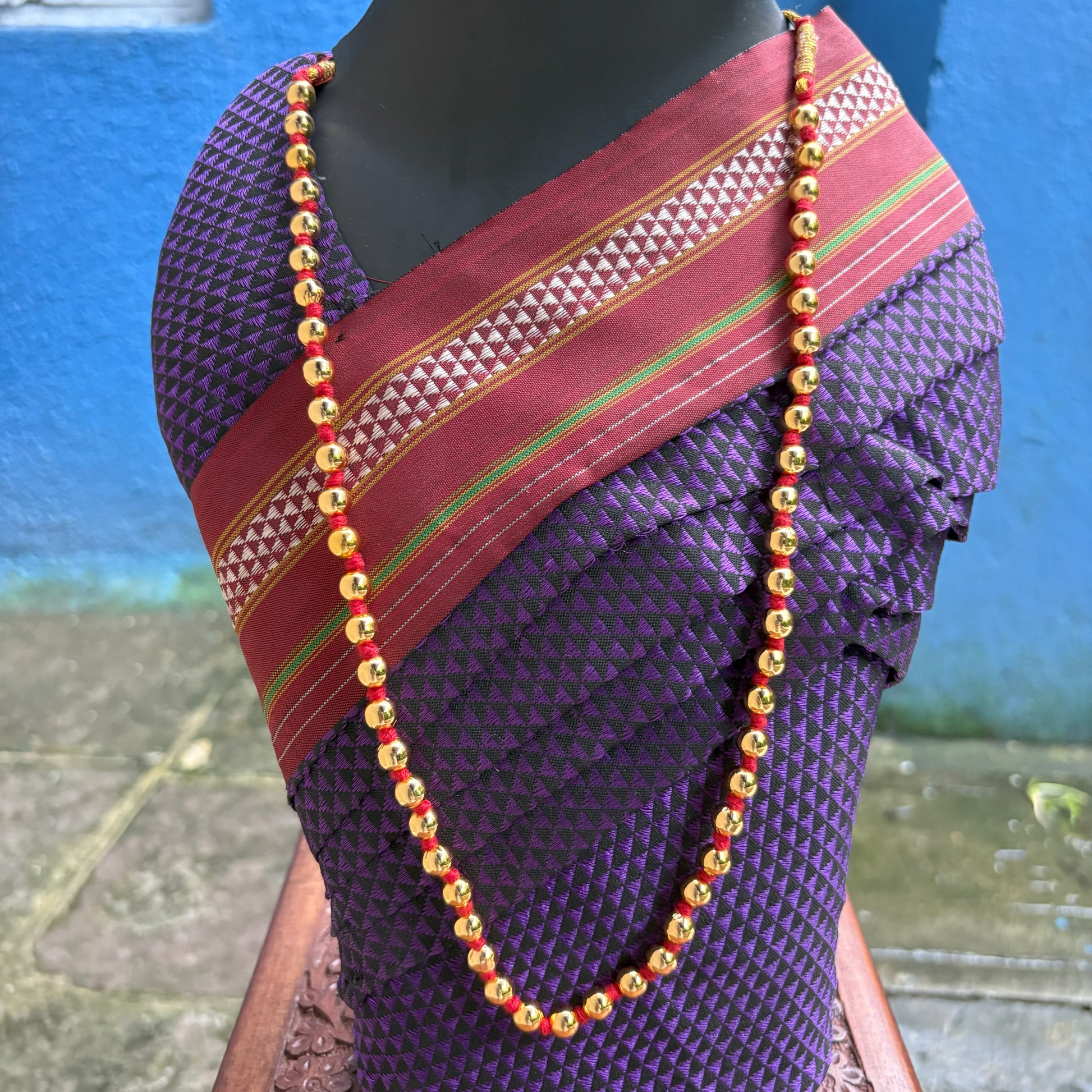 सोन्याच्या टपोऱ्या मण्यांनी बनवलेली ही एक ओळीची माळ पारंपरिक मराठी दागिन्यांमध्ये एक खास स्थान ठेवते. ही माळ अतिशय नाजूक, तरीही उठून दिसणारी असून कोणत्याही पोशाखासोबत खुलून येते. एकदाणी माळ ही सण, लग्न समारंभ किंवा दररोज वापरण्यासाठी एक आकर्षक पर्याय आहे. कोणत्याही वयाच्या महिलेसाठी योग्य.
