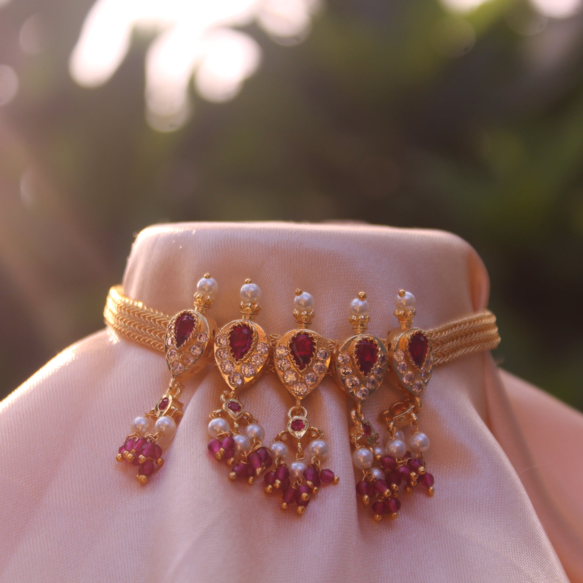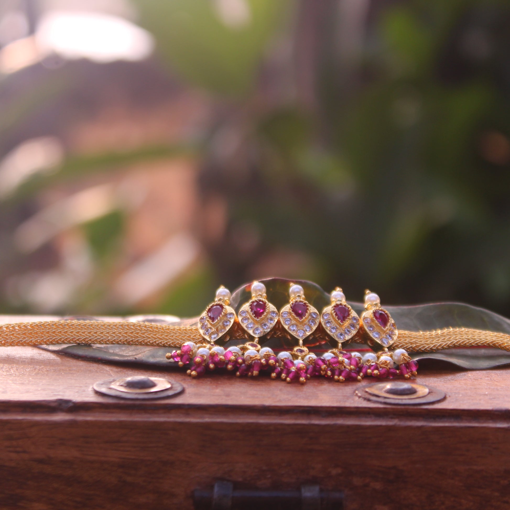 - Gem type Kundan (pink) , American Diamond (White & Pink)