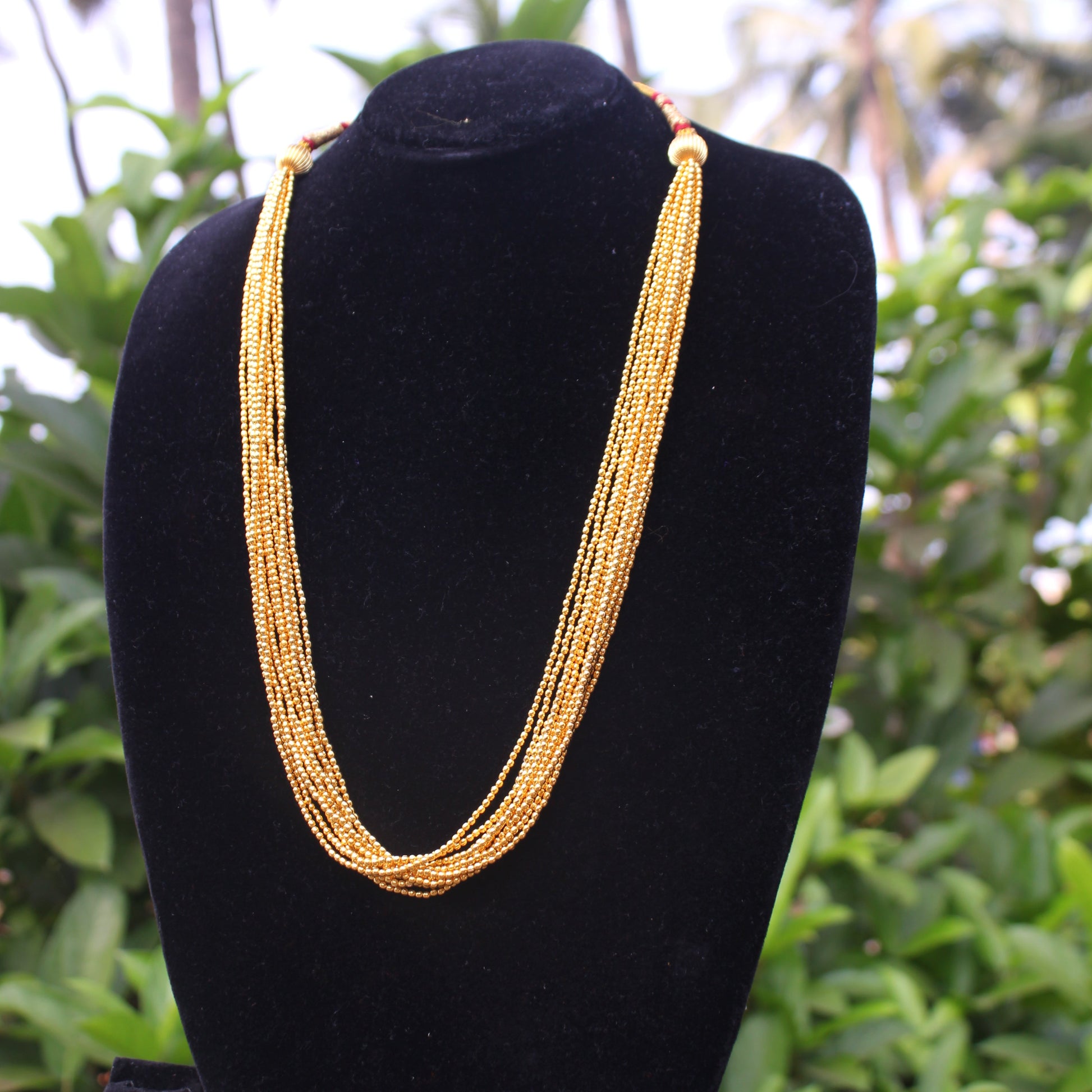 This delicate and elegant necklace is a traditional piece of jewelry from Maharashtra. The beads are threaded onto a single string. 'Jondhalmani Poth' are made from three layers to more than 10 layers combined to form a stunning necklace worn around the neck.