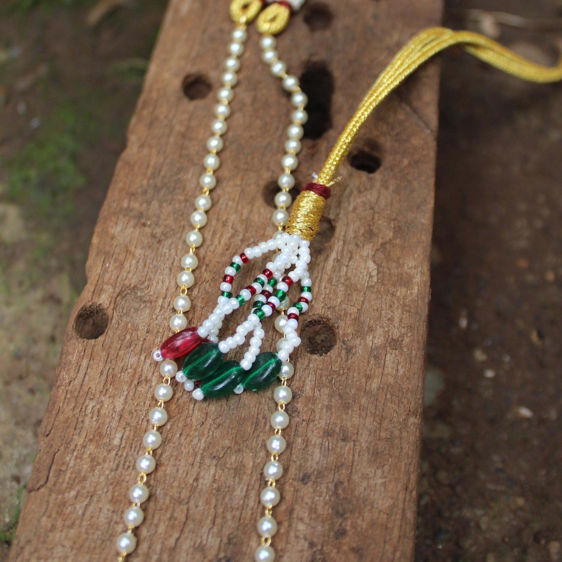 3 Stones Puneri Khod Tanmani With Single Layered Moti Chain.