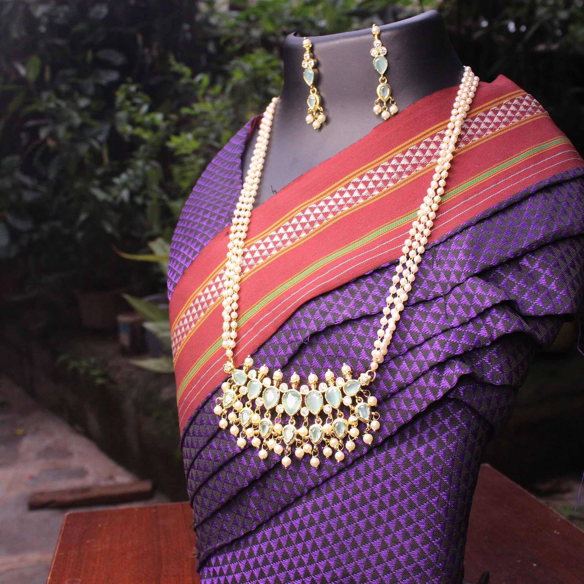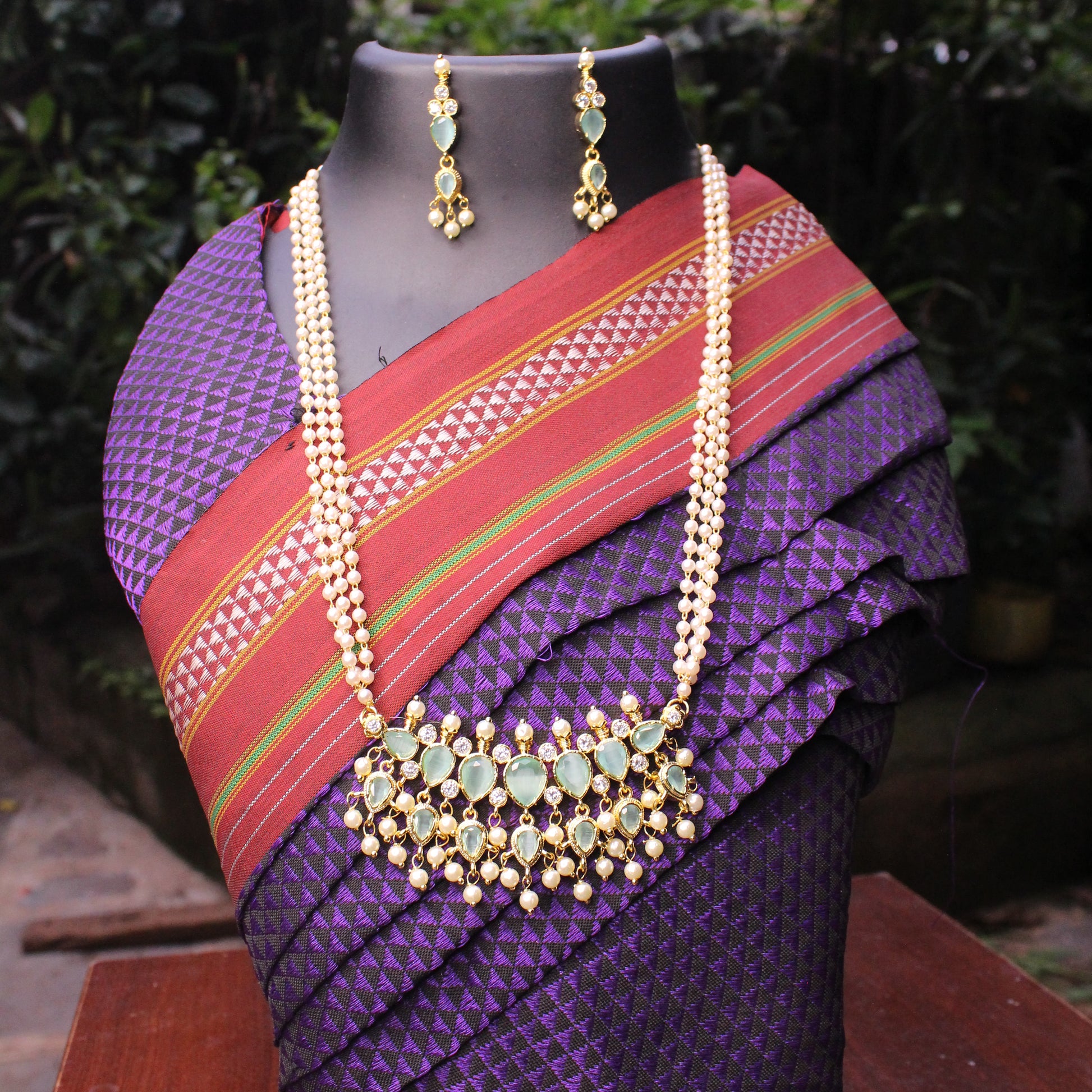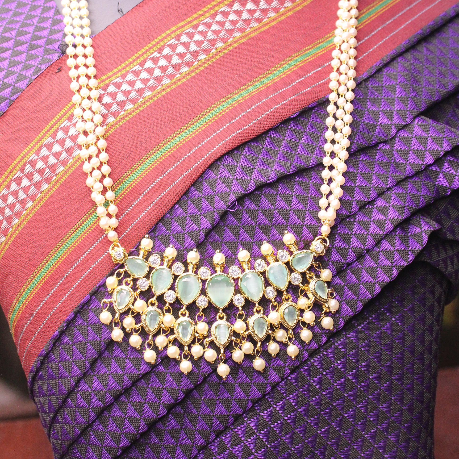 7 Stones Sadi Khod Tanmani With Triple Layered Moti Chain.