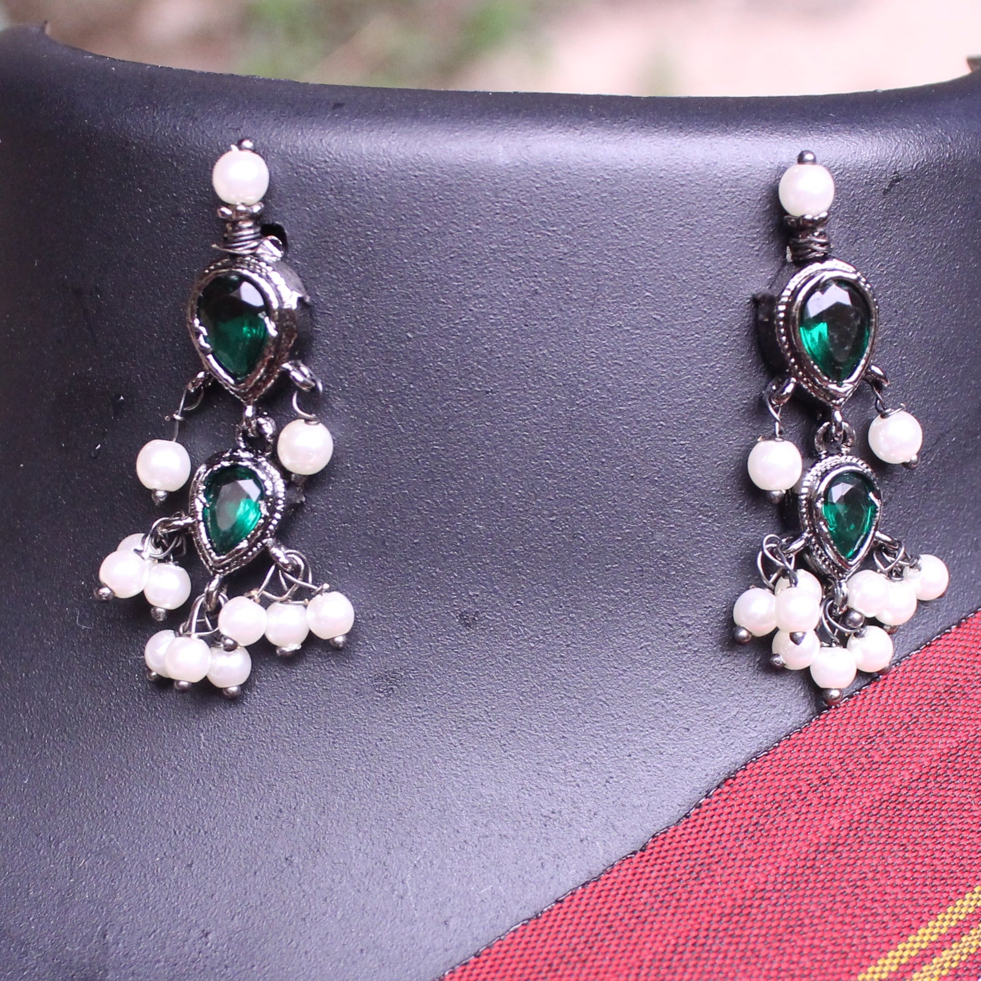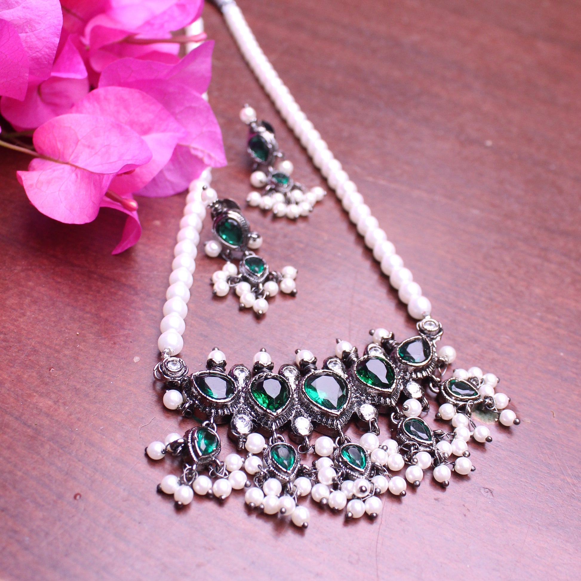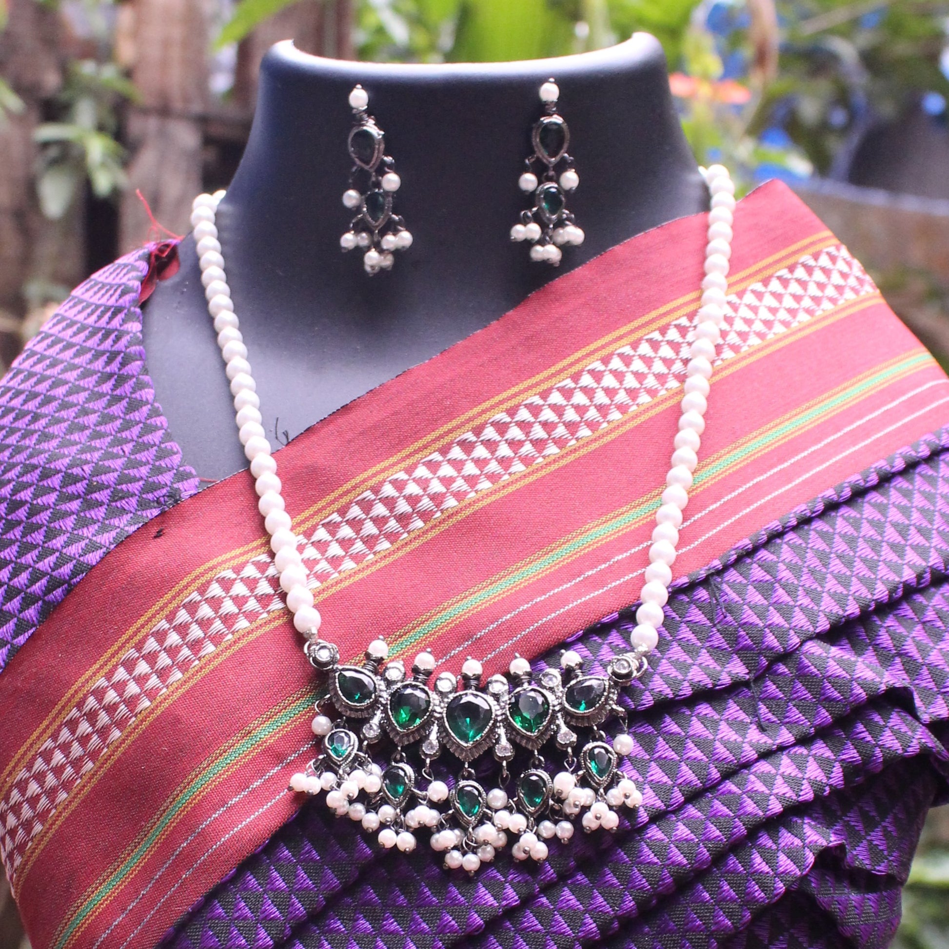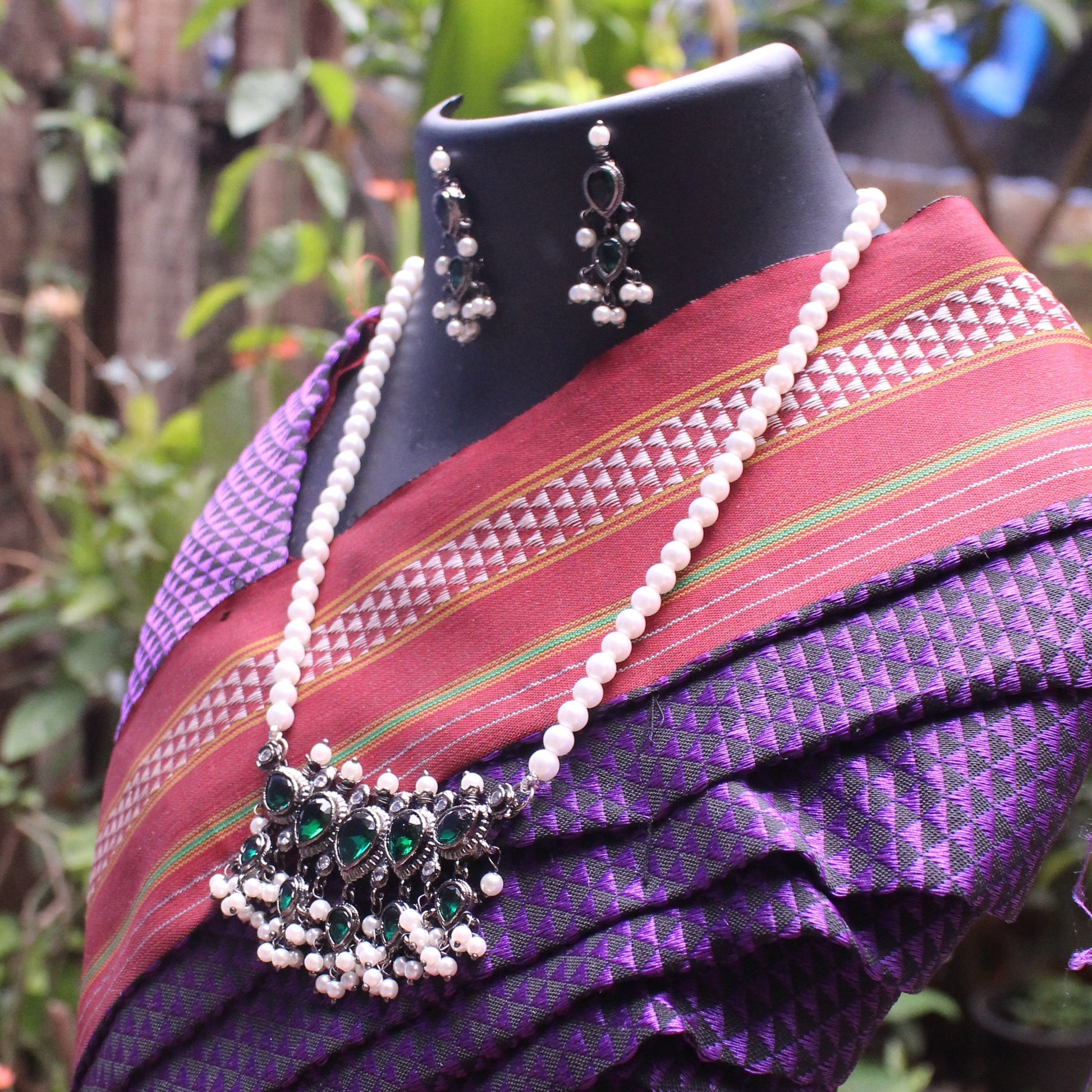 5 Stones Puneri Khod Tanmani With Triple Layered Moti Chain.