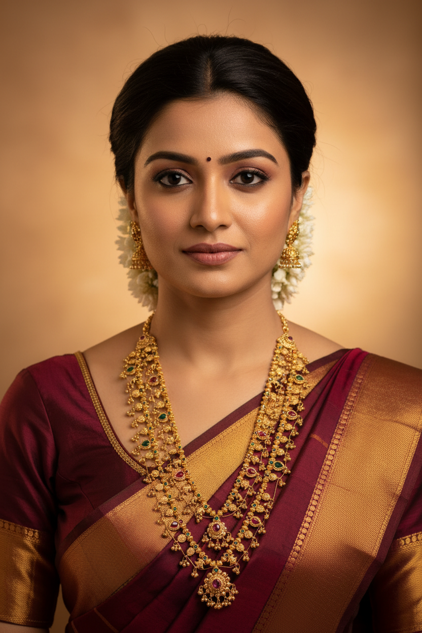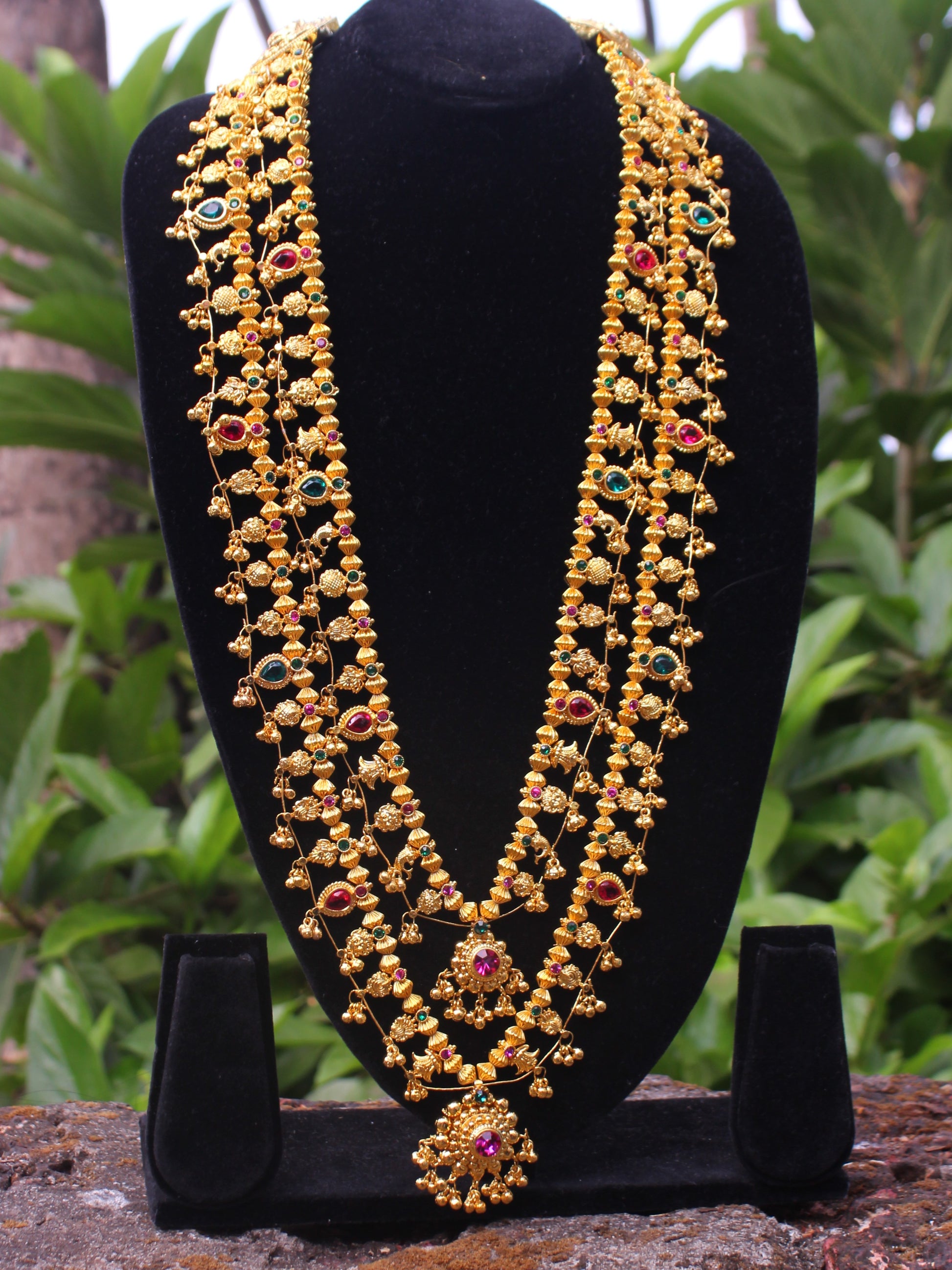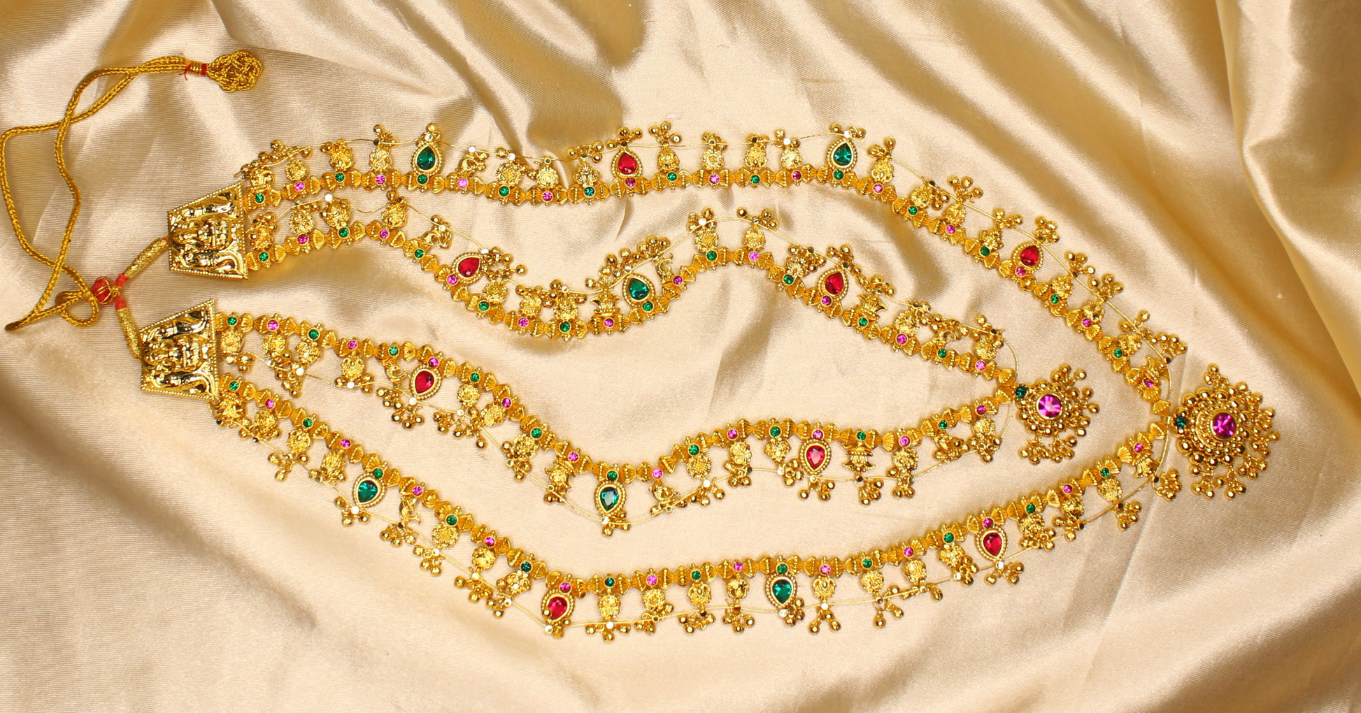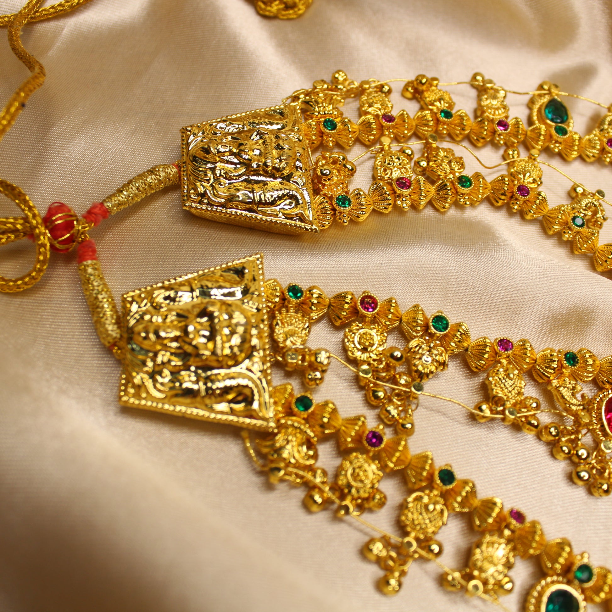 Product Description : 2 Layered Gold Kolhapuri Saaj with Saaj Ghat Pendant